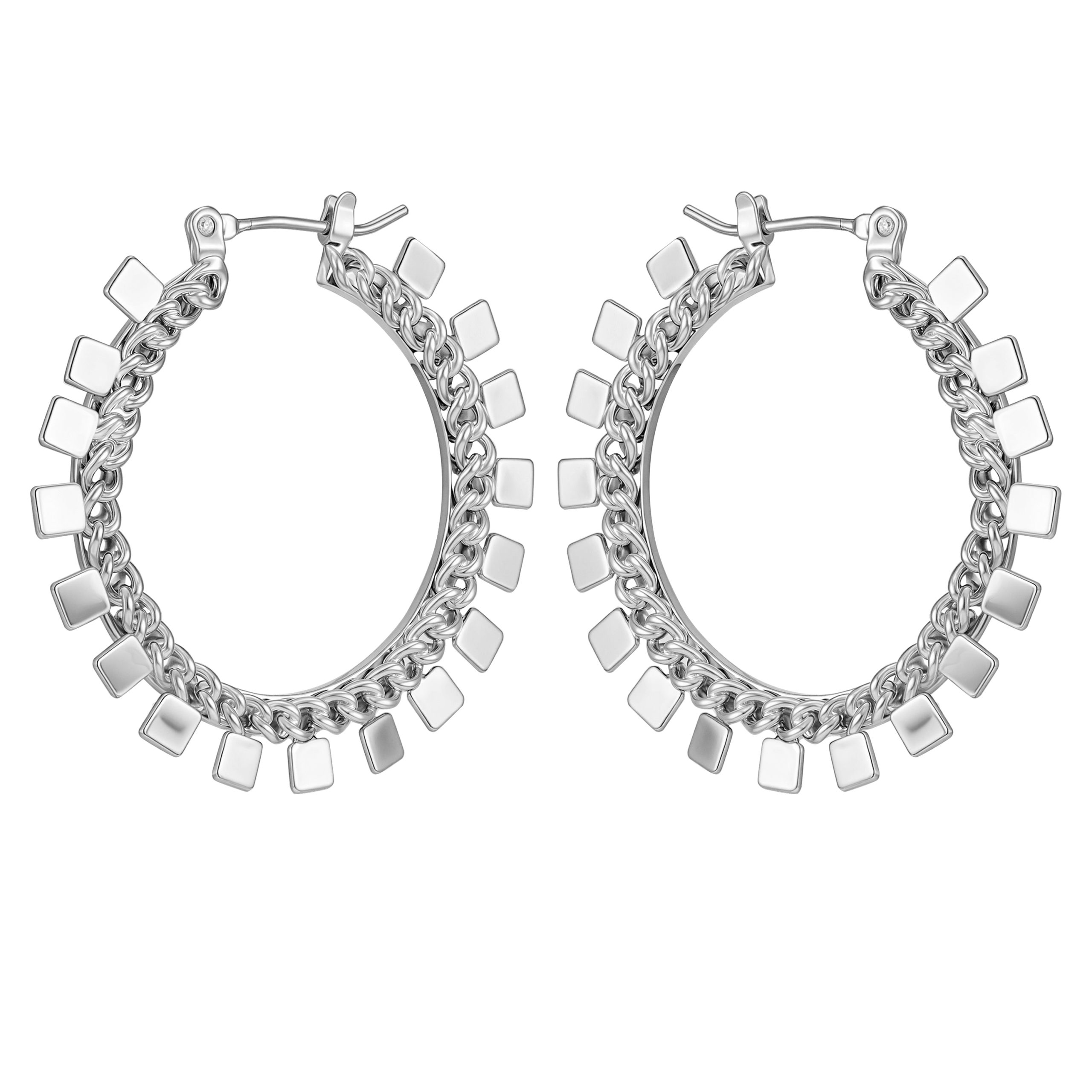 • Silver-tone hoops with square detailing