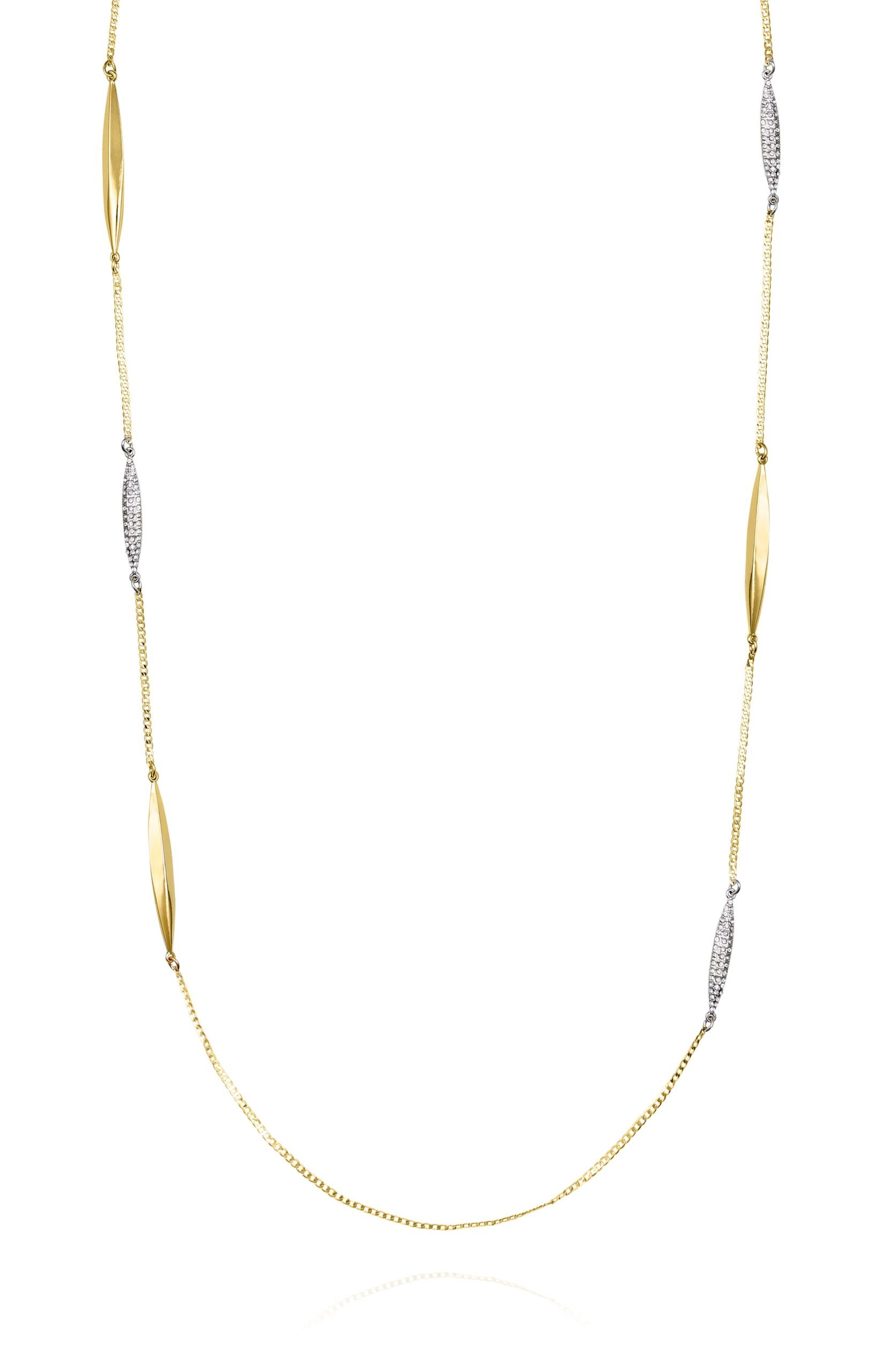 This Vince Camuto necklace combines gold and silver-tone elongated links for a modern. versatile design. A sophisticated accessory that complements casual and formal outfits alike.
